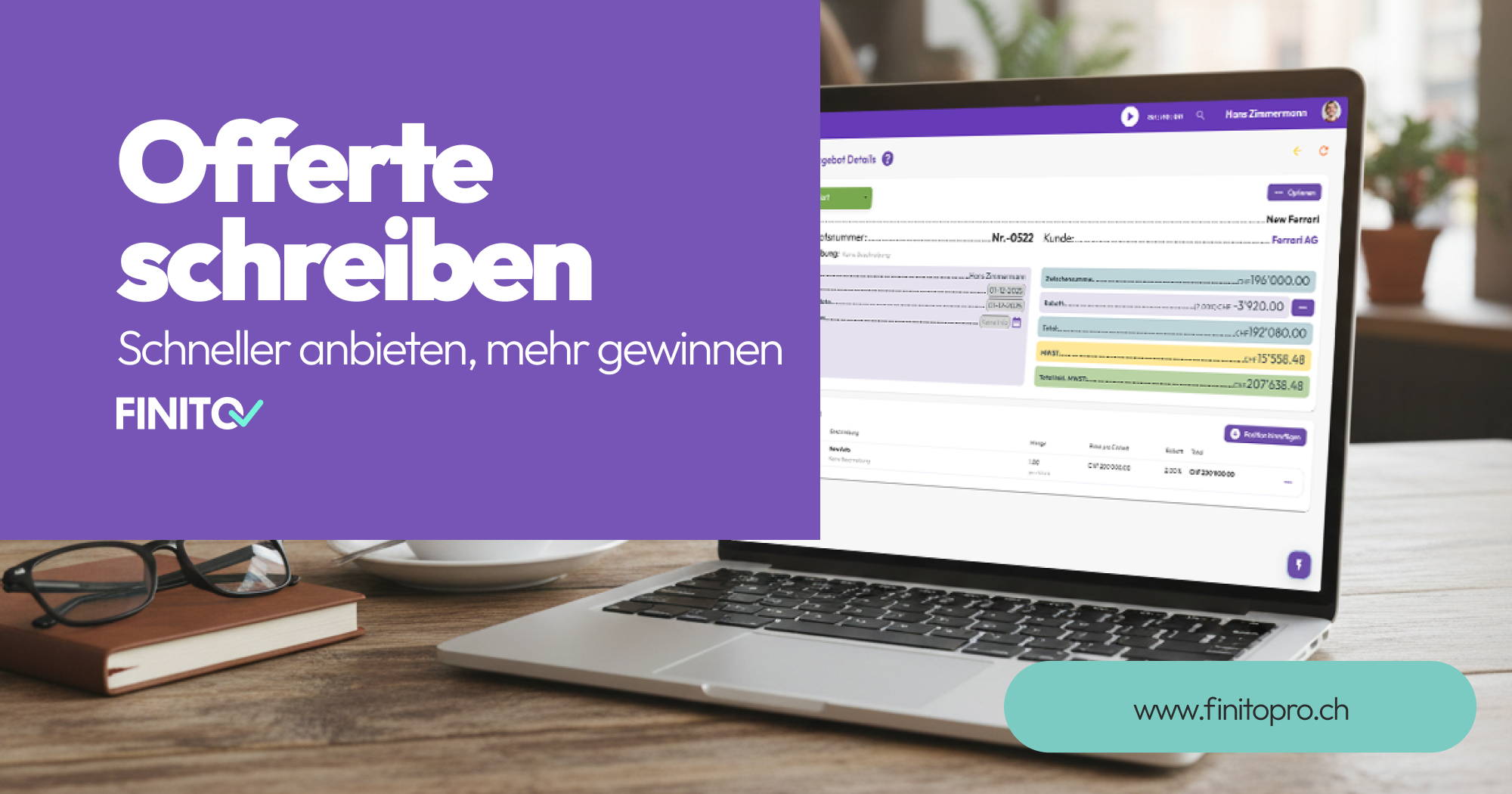 Erfahren Sie, wie Sie mit der richtigen Software professionelle Offerten in wenigen Minuten erstellen und mit einem Klick in Projekte oder Rechnungen umwandeln können.